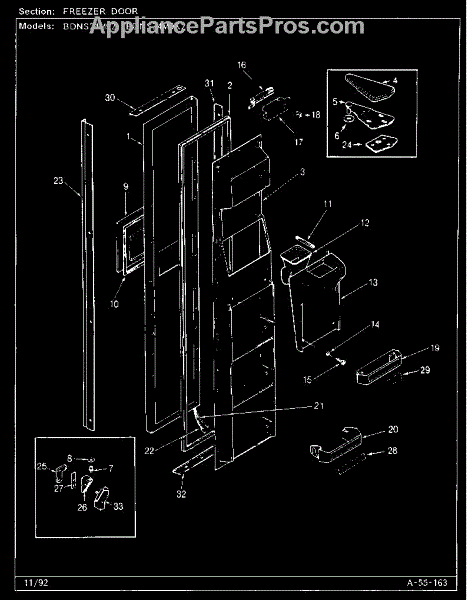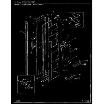 Parts for Maytag BDNS24M92/CP86A: Freezer Door Parts