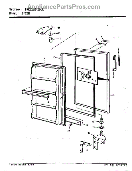 This factory screw secures appliance components to their mounting points. Replace missing, worn, or stripped hardware to restore a tight fit, proper alignment, and quieter operation across the affected assembly.