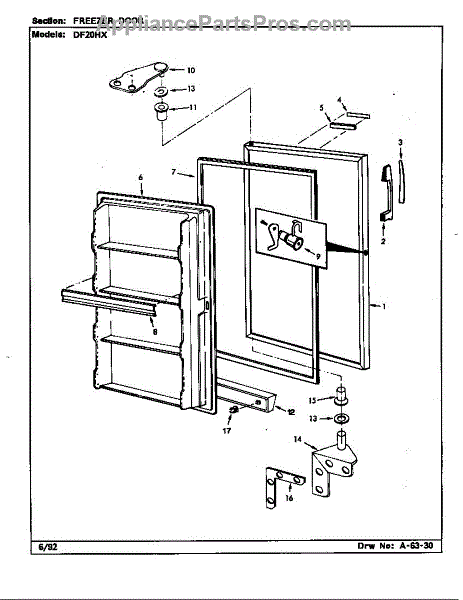 This factory screw secures appliance components to their mounting points. Replace missing, worn, or stripped hardware to restore a tight fit, proper alignment, and quieter operation across the affected assembly.