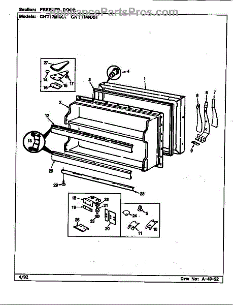 Parts for Maytag GNT17M4XA/CF22A: Freezer Door Parts