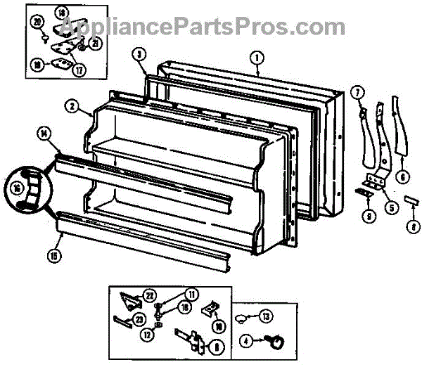 Parts for Maytag GT17X93V/DF25A: Freezer Door Parts