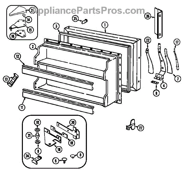 Parts for Maytag GT21X93A/DF84A: Freezer Door Parts