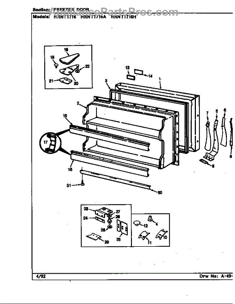 Parts for Maytag HRNT1716H/BF34A: Freezer Door (Hrnt1716 / Bf28a) (Hrnt1716a / Bf33a) (Hrnt1716h / Bf34a) (Hrnt1716 / Bf33a) (Hrnt1716 / Bf34a) Parts