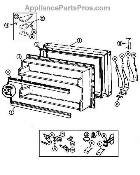 Parts for Maytag HRNT23393A/DF99A: Freezer Door Parts