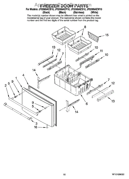 Parts for Maytag JFI2089AEP10: 09 - Freezer Door Parts