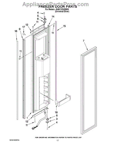 Parts for Maytag JS48CXDUDB00: 11 - Freezer Door Parts