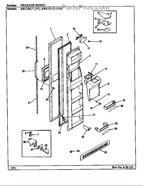 Parts for Maytag KRC22LN3W2/BP37A: Freezer Door Parts