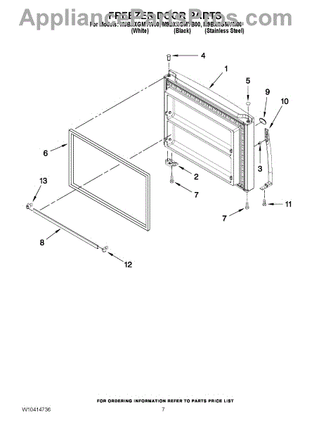 This freezer door gasket creates a tight seal around the door opening to keep cold air in and humidity out. Replacing a worn gasket restores proper door closure, helps prevent frost buildup, and supports consistent freezer temperatures.