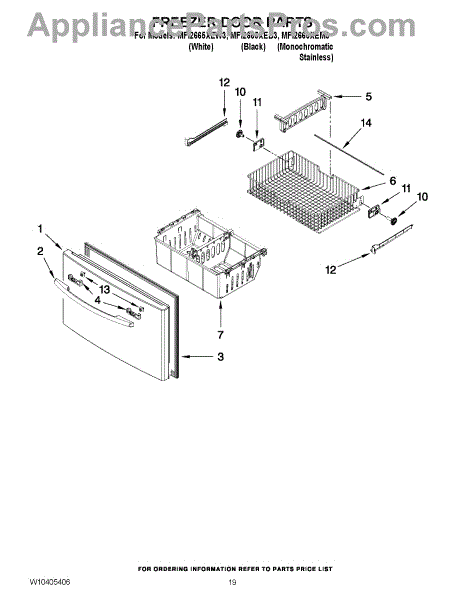 Parts for Maytag MFI2665XEM3: 10 - Freezer Door Parts
