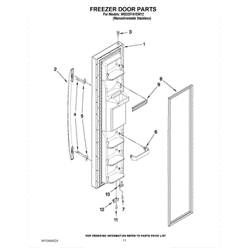 This freezer door shelf trim is the integrated retaining rail that secures items on the door bin. Replacing a cracked or missing rail restores a snug, reliable hold and keeps your freezer door storage tidy and usable.