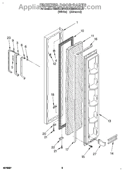 This freezer door gasket creates a tight seal around the door to keep cold air in and humid air out. Replacing a worn gasket restores proper temperature control, reduces frost, and helps the door close and seal correctly.