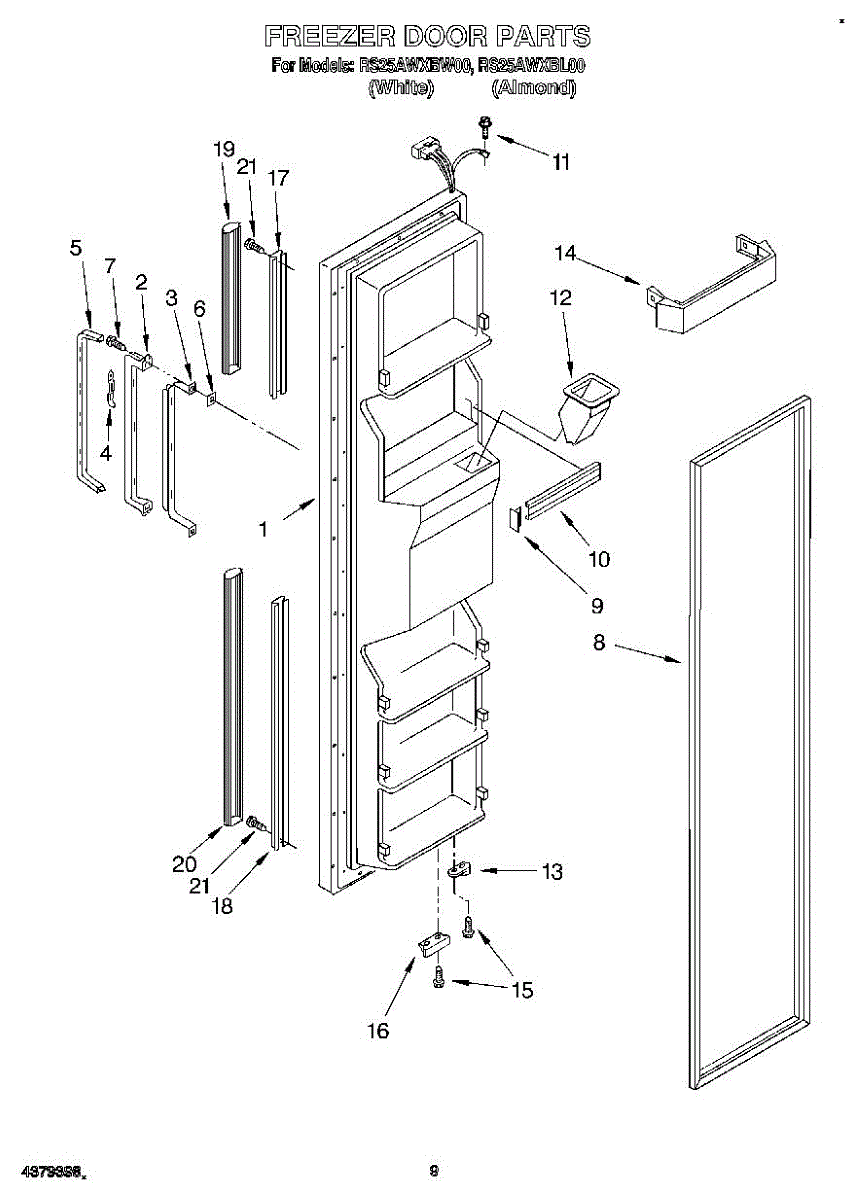 The Freezer Door Gasket is an OEM replacement part for Whirlpool refrigerators. It creates a tight insulating seal around the perimeter of the freezer door opening. The gasket helps maintain consistent sub-freezing temperatures inside by preventing cold air loss. Causes relate to natural compression fatigue over time, cracks developing with use, or accidental slicing/tears from sharp edges within the freezer. Symptoms of a compromised gasket include: