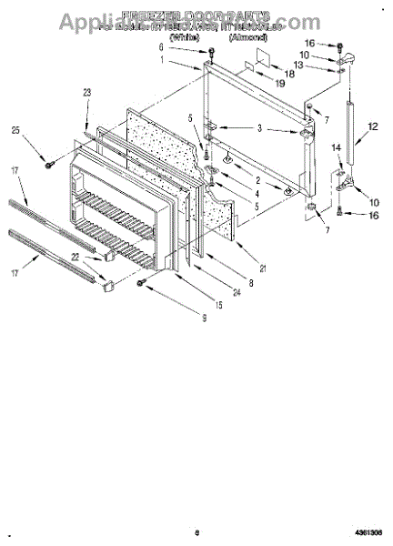 Parts for Roper RT18BKXAW00: 05 - Freezer Door Parts