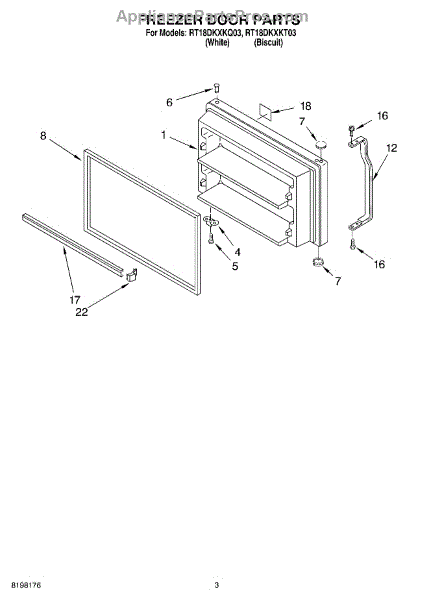 Parts for Roper RT18DKXKQ03: 02 - Freezer Door Parts