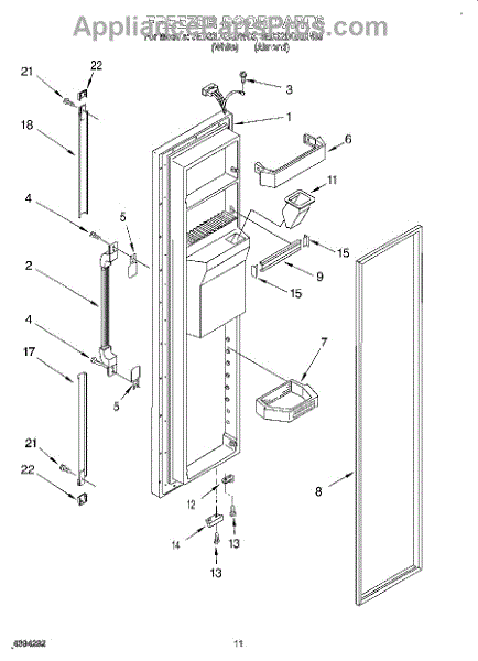 Parts for Whirlpool 3ED22DQXDN03: 08 - Freezer Door Parts