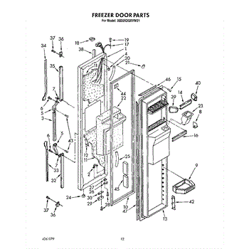 Parts for Whirlpool 3ED25DQXVW01: 08 - Freezer Door Parts