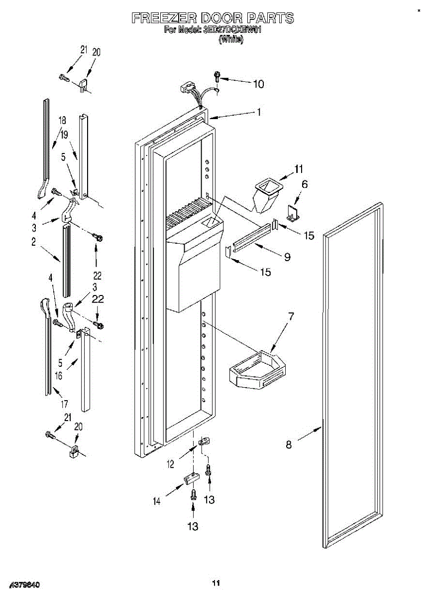 The Freezer Door Gasket is an OEM replacement part for Whirlpool refrigerators. It creates a tight insulating seal around the perimeter of the freezer door opening. The gasket helps maintain consistent sub-freezing temperatures inside by preventing cold air loss. Causes relate to natural compression fatigue over time, cracks developing with use, or accidental slicing/tears from sharp edges within the freezer. Symptoms of a compromised gasket include: