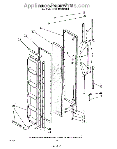 Parts for Whirlpool 3EHD191MKWR0: 10 - Freezer Door Parts