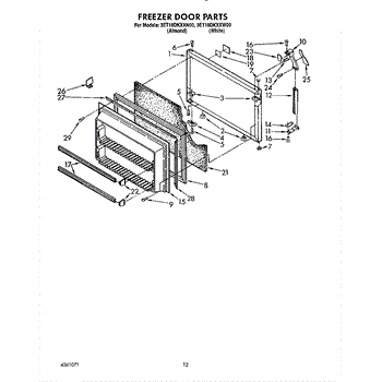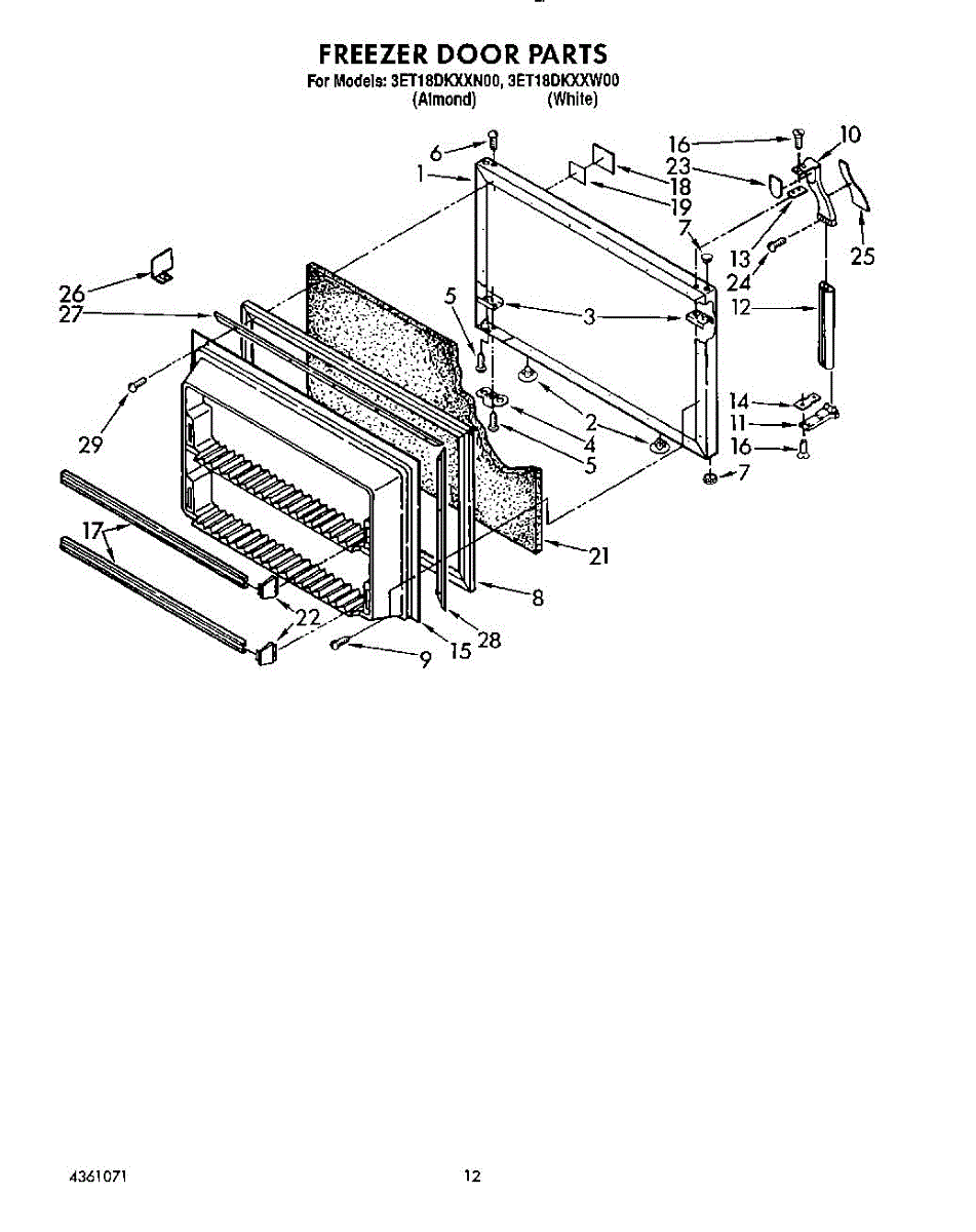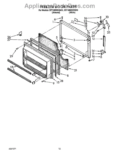Parts for Whirlpool 3ET18DKXXW00: 08 - Freezer Door Parts