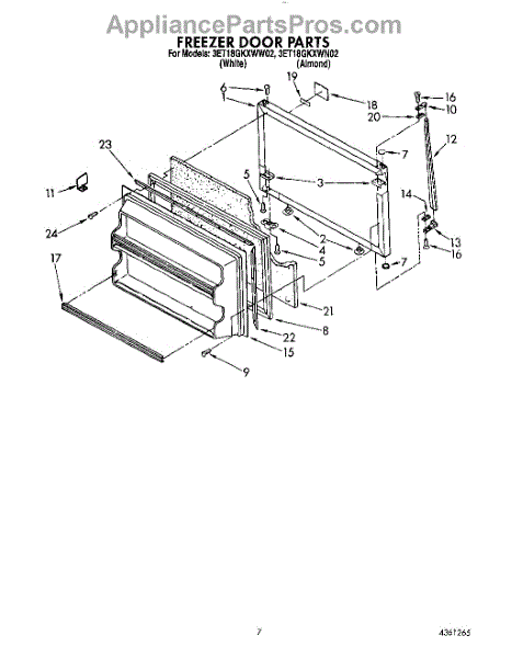 Parts for Whirlpool 3ET18GKXWW02: 06 - Freezer Door Parts
