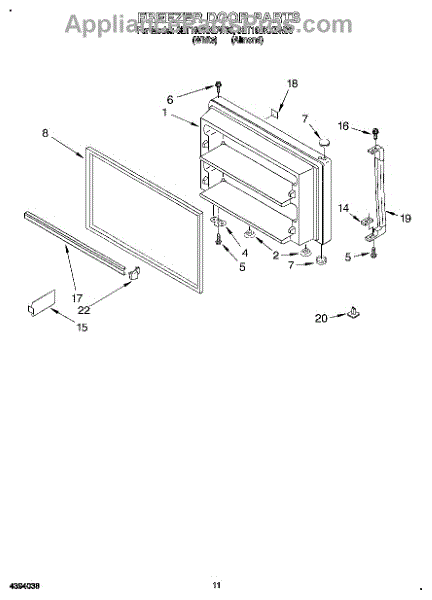 Parts for Whirlpool 3ET19DKXDN00: 06 - Freezer Door, Lit / Optional Parts