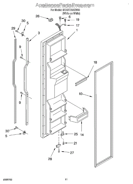 Parts for Whirlpool 3KART730GW00: 06 - Freezer Door Parts