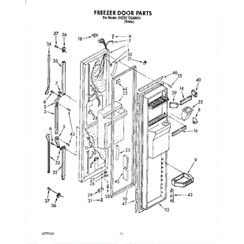Shim that aligns and supports the freezer door closer assembly. Replaces worn, missing, or damaged original shim to restore smooth door movement.
