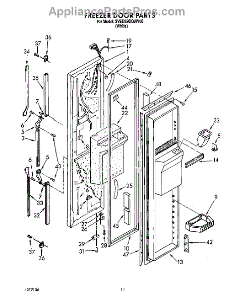 Parts for Whirlpool 3VED29DQAW00: 07 - Freezer Door Parts