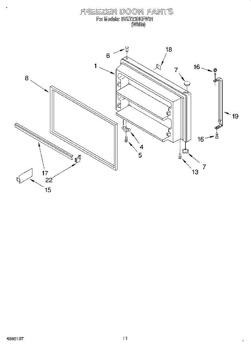 This freezer door gasket creates a tight seal around the door opening to keep cold air in and humidity out. Replacing a worn gasket restores proper door closure, helps prevent frost buildup, and supports consistent freezer temperatures.
