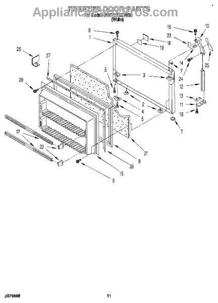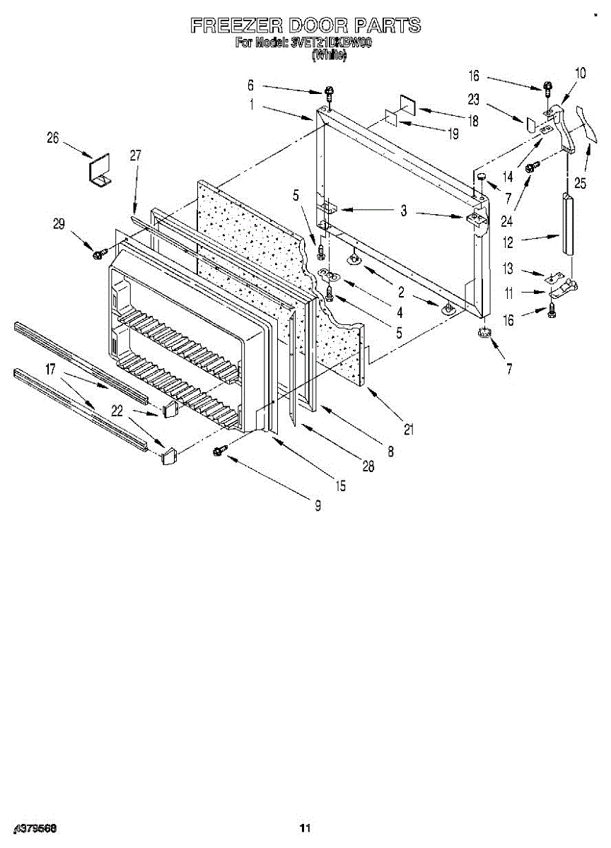 Parts for Whirlpool 3VET21DKBW00: 07 - Freezer Door Parts