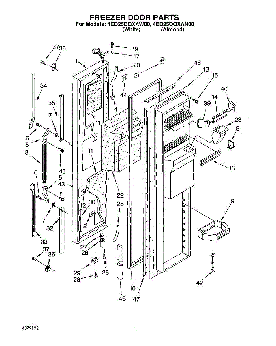 Plastic screw anchors secure panels, trim, and door handles on refrigerators. Replace missing, cracked, or stripped anchors to properly fasten components.