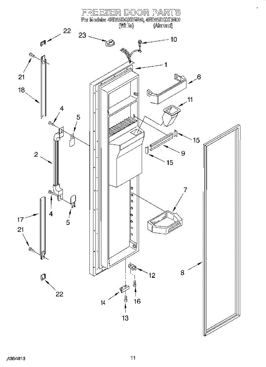 Parts for Whirlpool 4ED25DQXDW02: 07 - Freezer Door Parts