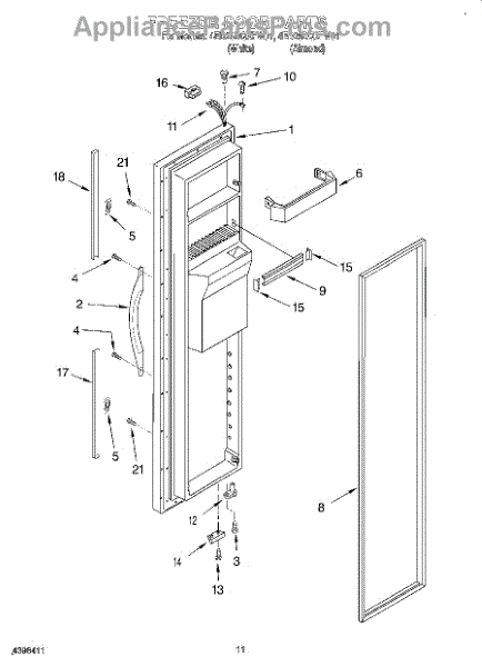 Parts for Whirlpool 4ED25DQXFN01: 07 - Freezer Door Parts