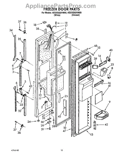 Parts for Whirlpool 4ED25DQXVW00: 08 - Freezer Door Parts
