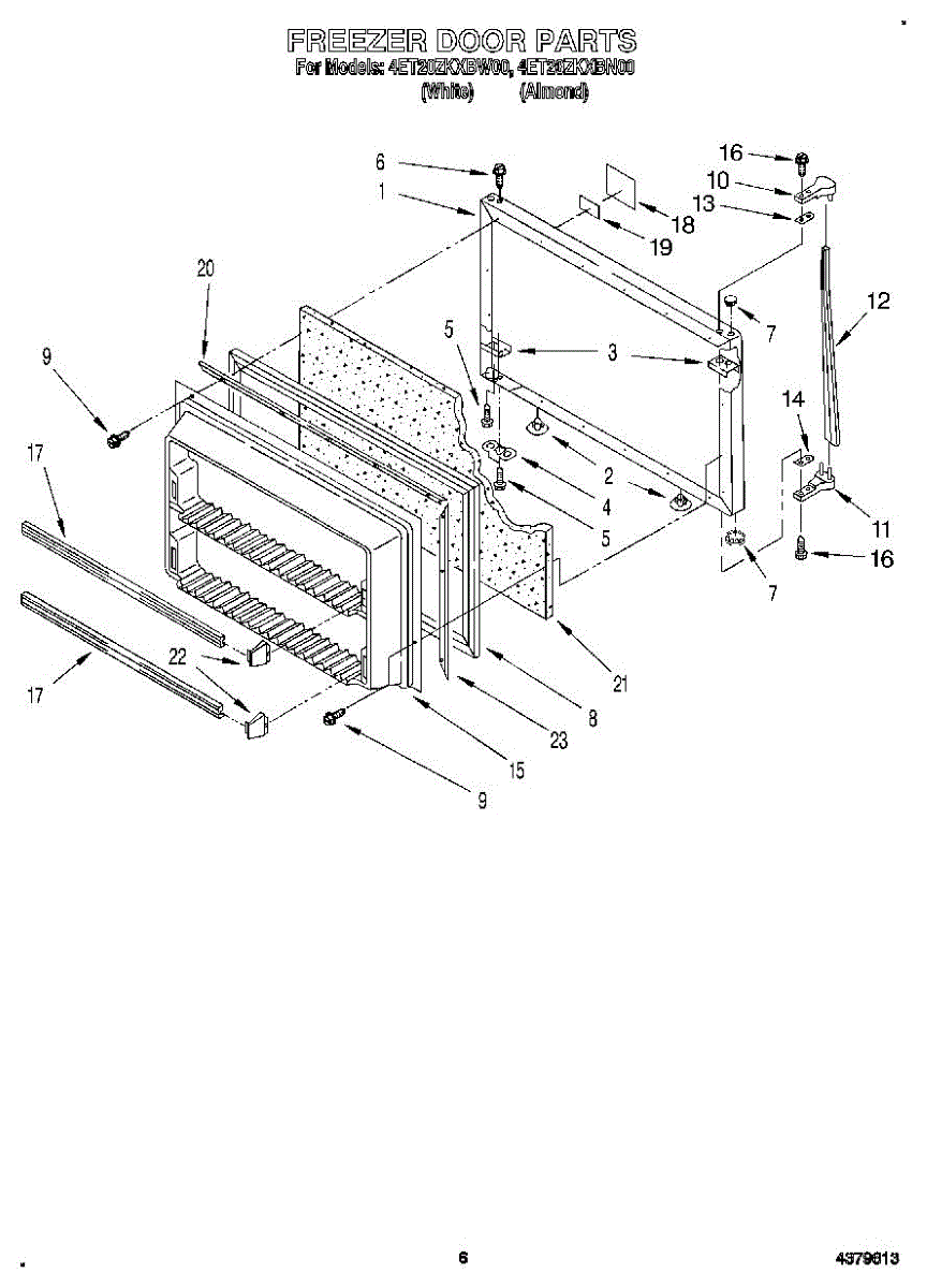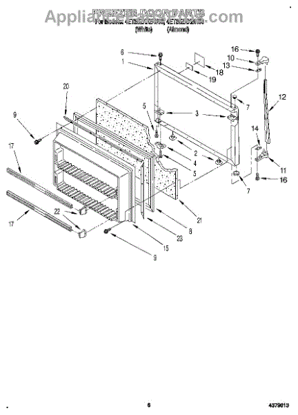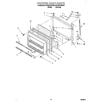 This freezer door gasket seals the door to the cabinet to keep cold air in and humid air out. Replacing a worn gasket restores a proper seal, helping maintain temperature and reducing frost and condensation around the door.