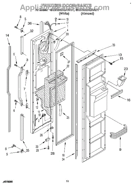 Parts for Whirlpool 4KSRS22QAA01: 07 - Freezer Door Parts