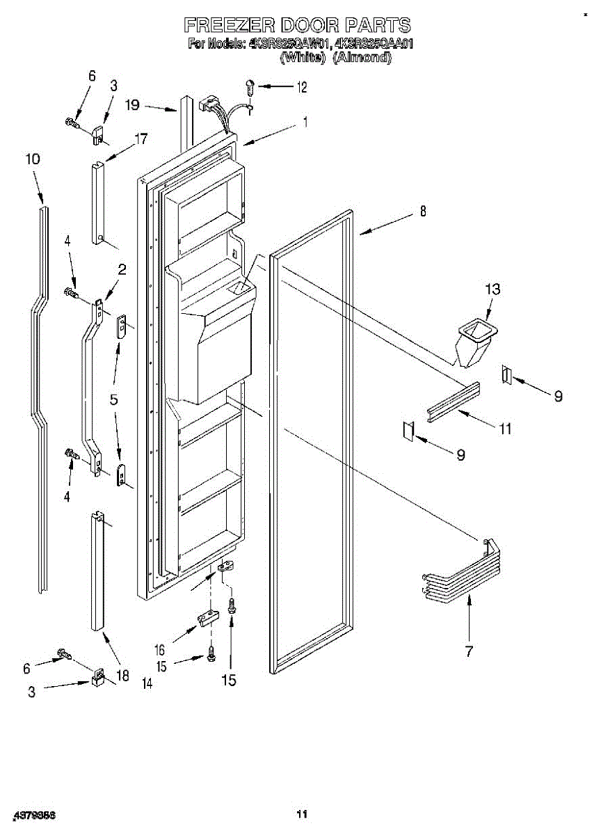Parts for Whirlpool 4KSRS25QAA01: 07 - Freezer Door Parts