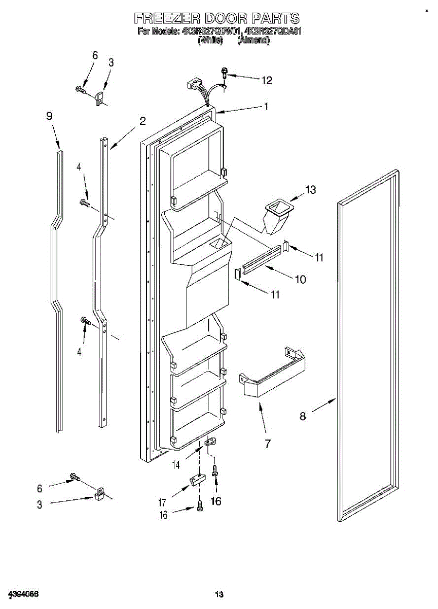 The Freezer Door Gasket is an OEM replacement part for Whirlpool refrigerators. It creates a tight insulating seal around the perimeter of the freezer door opening. The gasket helps maintain consistent sub-freezing temperatures inside by preventing cold air loss. Causes relate to natural compression fatigue over time, cracks developing with use, or accidental slicing/tears from sharp edges within the freezer. Symptoms of a compromised gasket include: