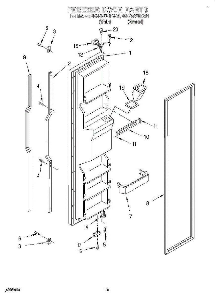 The Freezer Door Gasket is an OEM replacement part for Whirlpool refrigerators. It creates a tight insulating seal around the perimeter of the freezer door opening. The gasket helps maintain consistent sub-freezing temperatures inside by preventing cold air loss. Causes relate to natural compression fatigue over time, cracks developing with use, or accidental slicing/tears from sharp edges within the freezer. Symptoms of a compromised gasket include: