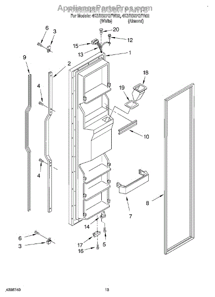 The Freezer Door Gasket is an OEM replacement part for Whirlpool refrigerators. It creates a tight insulating seal around the perimeter of the freezer door opening. The gasket helps maintain consistent sub-freezing temperatures inside by preventing cold air loss. Causes relate to natural compression fatigue over time, cracks developing with use, or accidental slicing/tears from sharp edges within the freezer. Symptoms of a compromised gasket include: