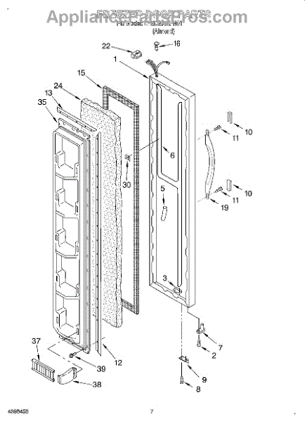 Parts for Whirlpool 4YED20TKFN01: 05 - Freezer Door Parts