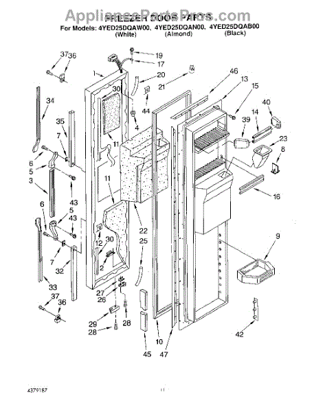 Parts for Whirlpool 4YED25DQAB00: 07 - Freezer Door Parts