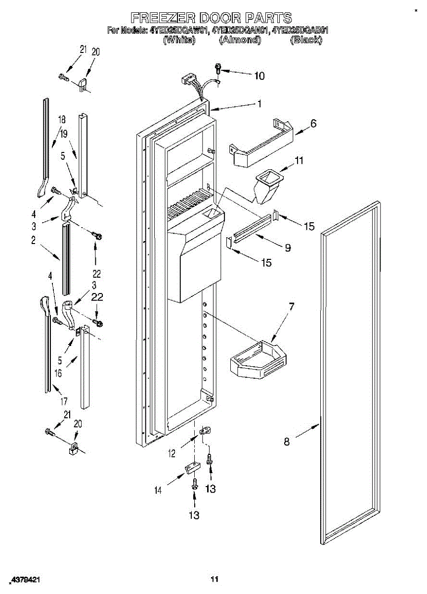 The Freezer Door Gasket is an OEM part for Whirlpool side-by-side and bottom-freezer refrigerators. As the seal that encloses cold air inside the freezer compartment, this gasket is critical for maintaining proper freezing temperatures.