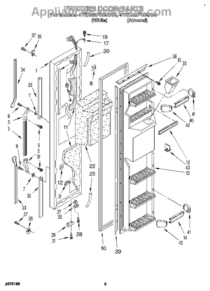 Parts for Whirlpool 4YED25PWAN00: 07 - Freezer Door Parts