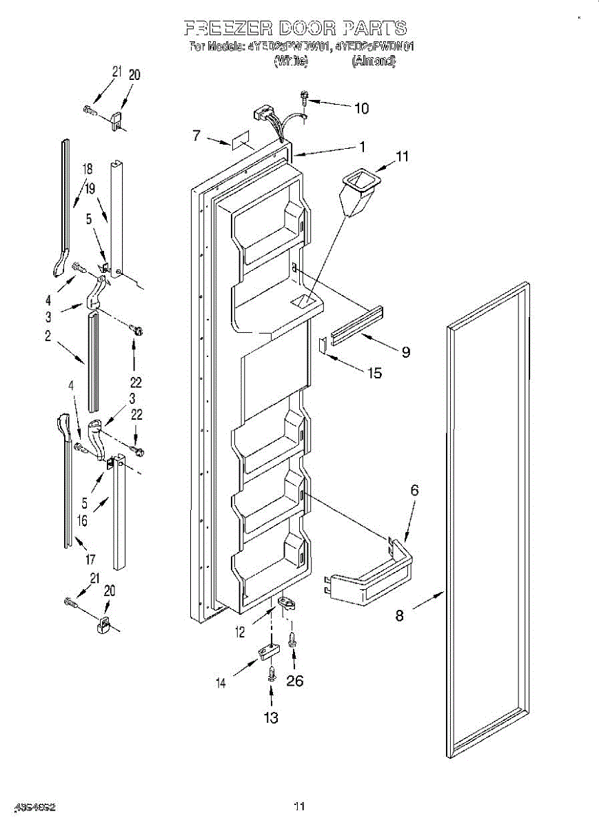 The Freezer Door Gasket is an OEM replacement part for Whirlpool refrigerators. It creates a tight insulating seal around the perimeter of the freezer door opening. The gasket helps maintain consistent sub-freezing temperatures inside by preventing cold air loss. Causes relate to natural compression fatigue over time, cracks developing with use, or accidental slicing/tears from sharp edges within the freezer. Symptoms of a compromised gasket include: