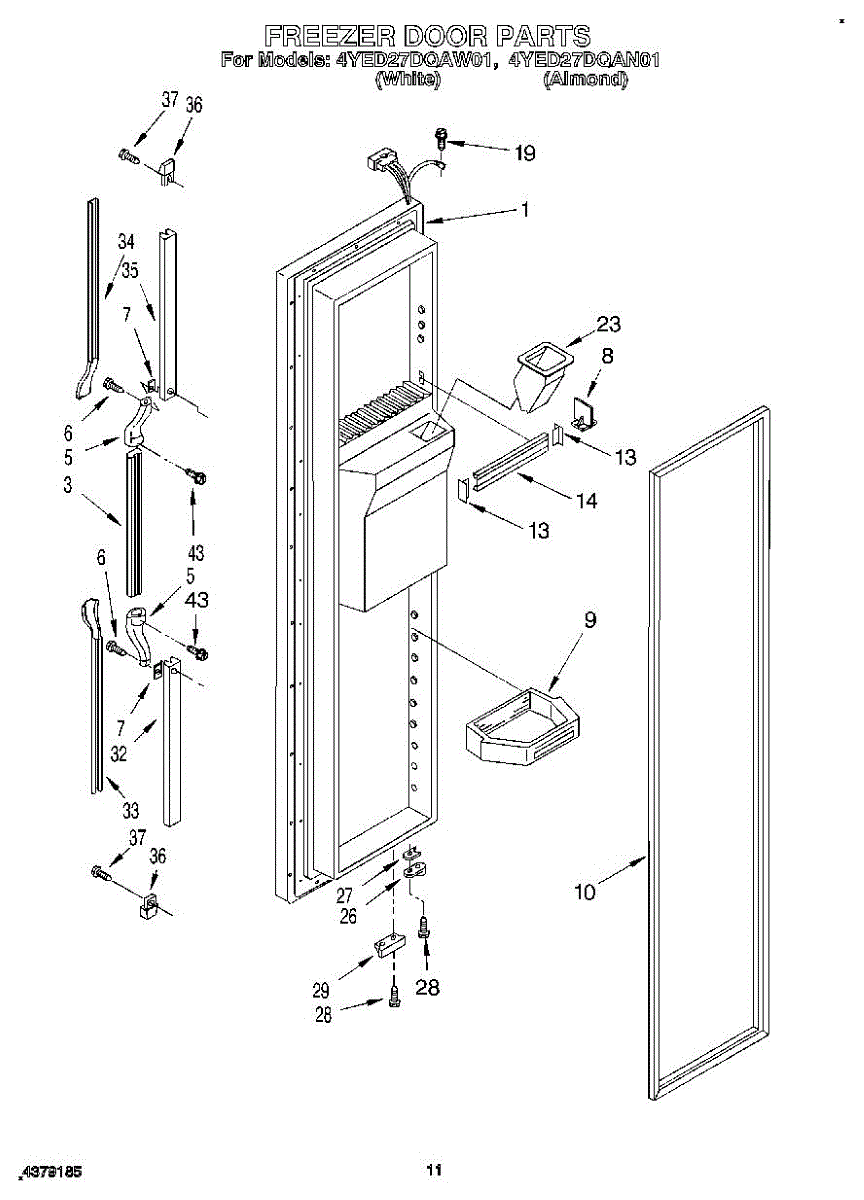 Parts for Whirlpool 4YED27DQAW01: 07 - Freezer Door Parts