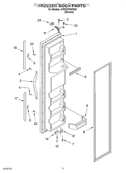 The Freezer Door Gasket is an OEM replacement part for Whirlpool refrigerators. It creates a tight insulating seal around the perimeter of the freezer door opening. The gasket helps maintain consistent sub-freezing temperatures inside by preventing cold air loss. Causes relate to natural compression fatigue over time, cracks developing with use, or accidental slicing/tears from sharp edges within the freezer. Symptoms of a compromised gasket include: