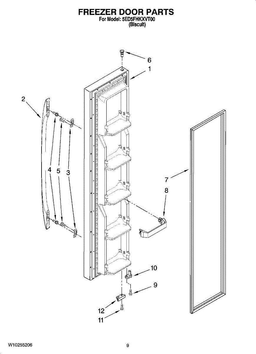 The Freezer Door Gasket is an OEM replacement part for Whirlpool refrigerators. It creates a tight insulating seal around the perimeter of the freezer door opening. The gasket helps maintain consistent sub-freezing temperatures inside by preventing cold air loss. Causes relate to natural compression fatigue over time, cracks developing with use, or accidental slicing/tears from sharp edges within the freezer. Symptoms of a compromised gasket include: