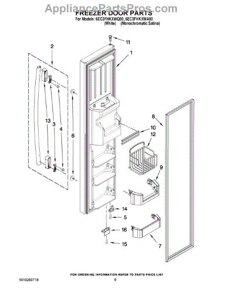 Parts for Whirlpool 6EC3FHKXWQ00: 06 - Freezer Door Parts
