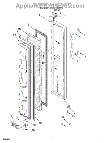 This freezer door gasket creates a tight seal around the door to keep cold air in and humid air out. Replacing a worn gasket restores proper temperature control, reduces frost, and helps the door close and seal correctly.